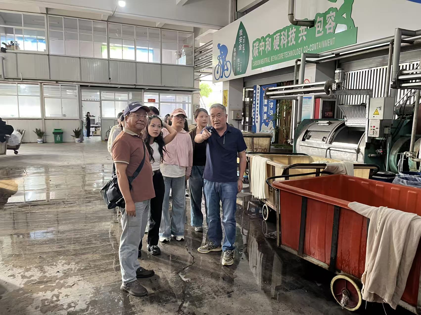 东华大学纺织化学与染整工程师生来笛科隆毛纺参观交流